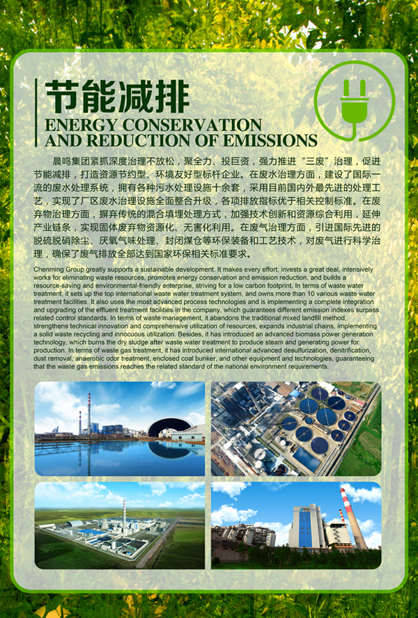 晨鳴集團堅定不移地走科技含量高、資源消耗低、環(huán)境污染少的新型工業(yè)化道路,大力實(shí)施綠色低碳戰略,努力做到經(jīng)濟建設與生態(tài)建設一起推進(jìn),經(jīng)濟競爭力與環(huán)境競爭力一起提升,物質(zhì)文明與生態(tài)文明一起發(fā)展,在保護環(huán)境中謀求發(fā)展,在科學(xué)發(fā)展中提高環(huán)保水平,實(shí)現經(jīng)濟效益與環(huán)境效益的“雙贏(yíng)”。