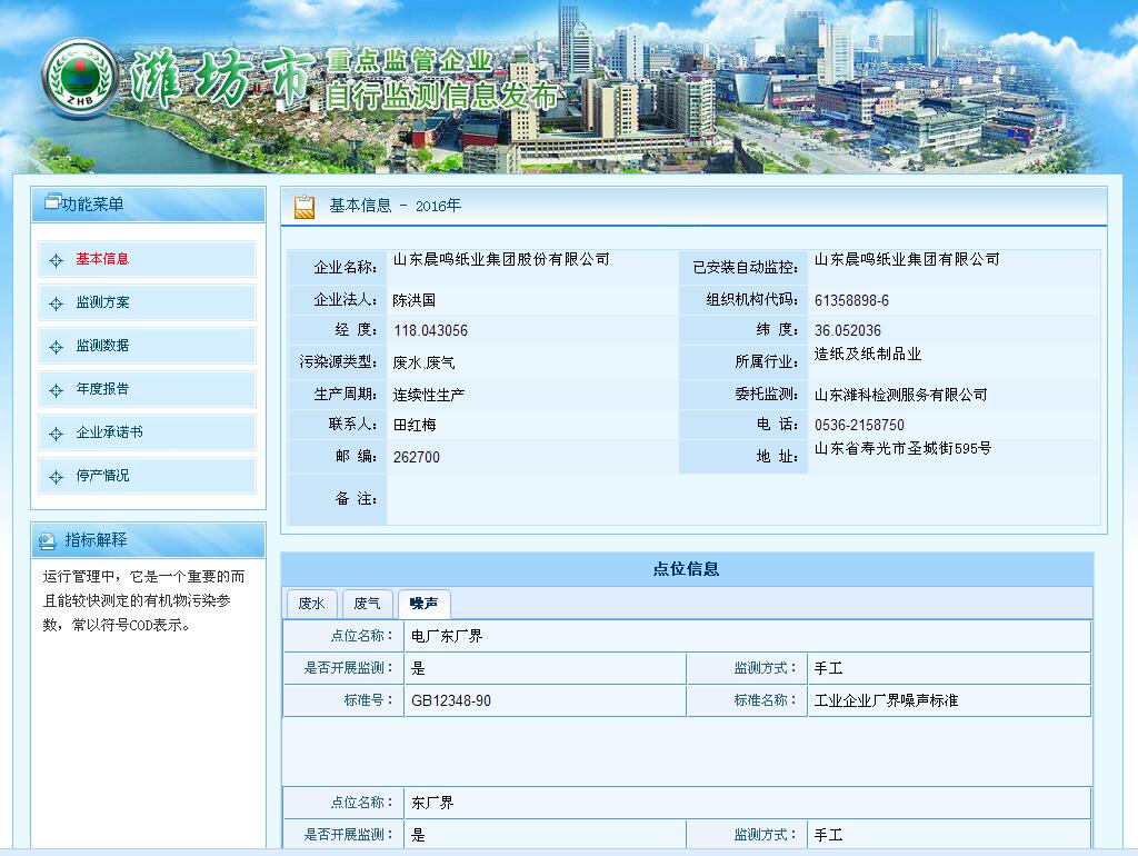 山東晨鳴紙業(yè)集團廢水、廢氣自測公示161122