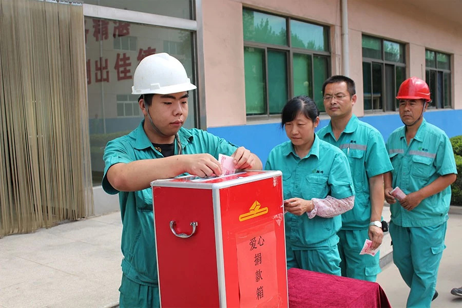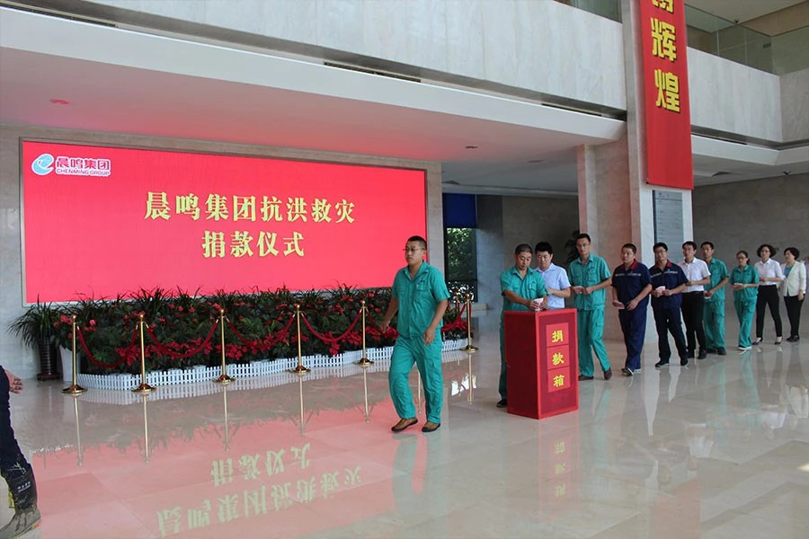 作為壽光市工業(yè)發(fā)展的領(lǐng)頭羊和排頭兵,晨鳴集團甘之如飴,不計得失,在抗災自救的同時(shí),主動(dòng)承擔社會(huì )責任,陸續組織抗洪救災捐款,發(fā)動(dòng)全員向災區捐款獻愛(ài)心,全體干部員工也積極響應,踴躍參加。8月27日上午,晨鳴集團辦公樓大廳前,正在排隊等候捐款的干部員工依次走到捐款箱前,鄭重向箱內投進(jìn)凝結著(zhù)顆顆晨鳴愛(ài)心的捐款。